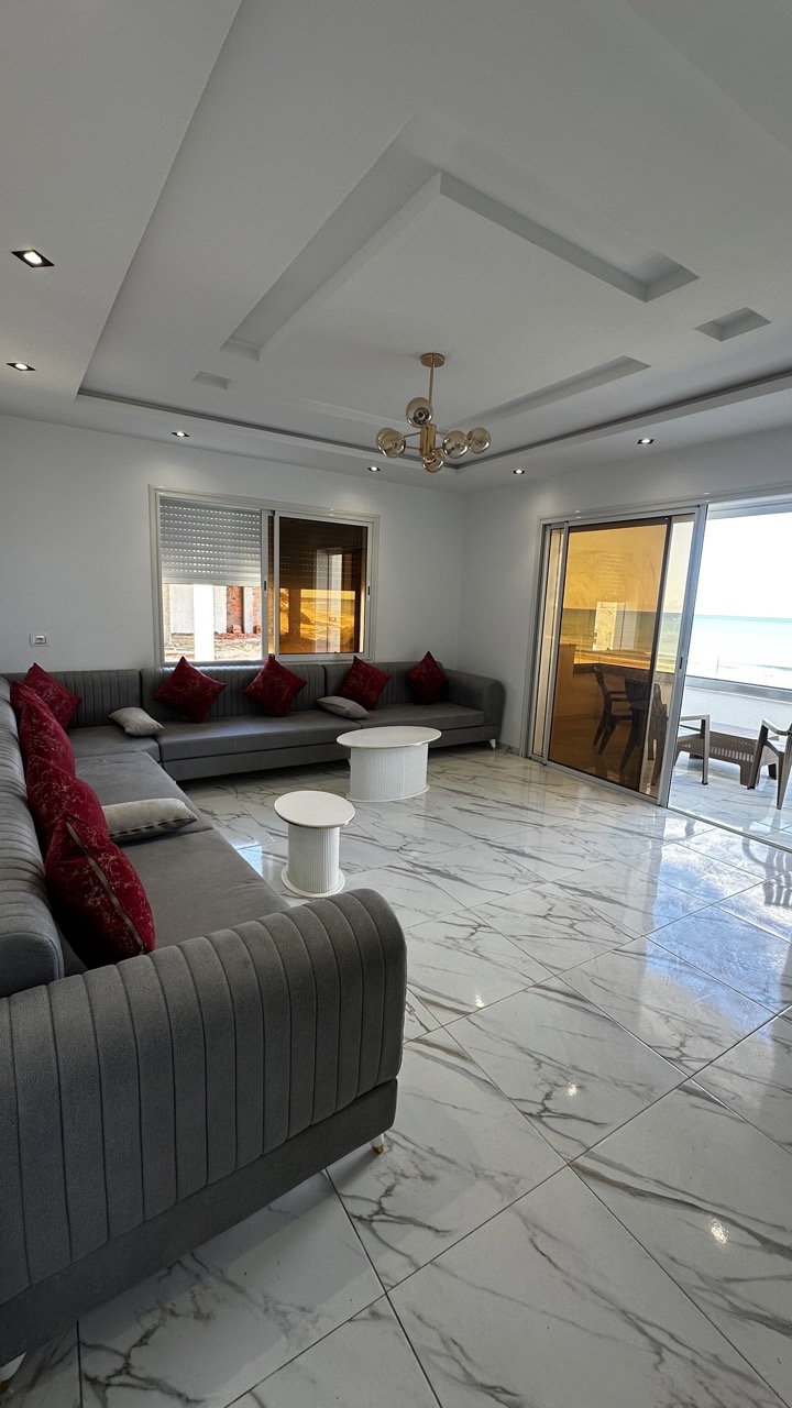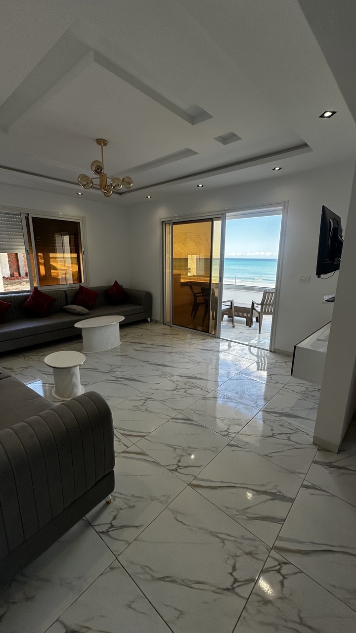 Profitez d’un séjour les pieds dans l’eau S+3 situés à Plage Ezzahra, Kélibia. Chaque appartement peut accueillir jusqu’à 7-8 personnes et offre une vue imprenable sur la mer.
