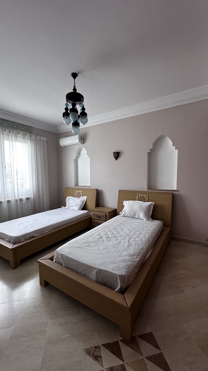 À seulement 5 minutes à pied de la plage de Marsa (ou 3 minutes en voiture de Mansourah et Petit Paris), cet appartement spacieux est idéal pour des vacances en famille.
