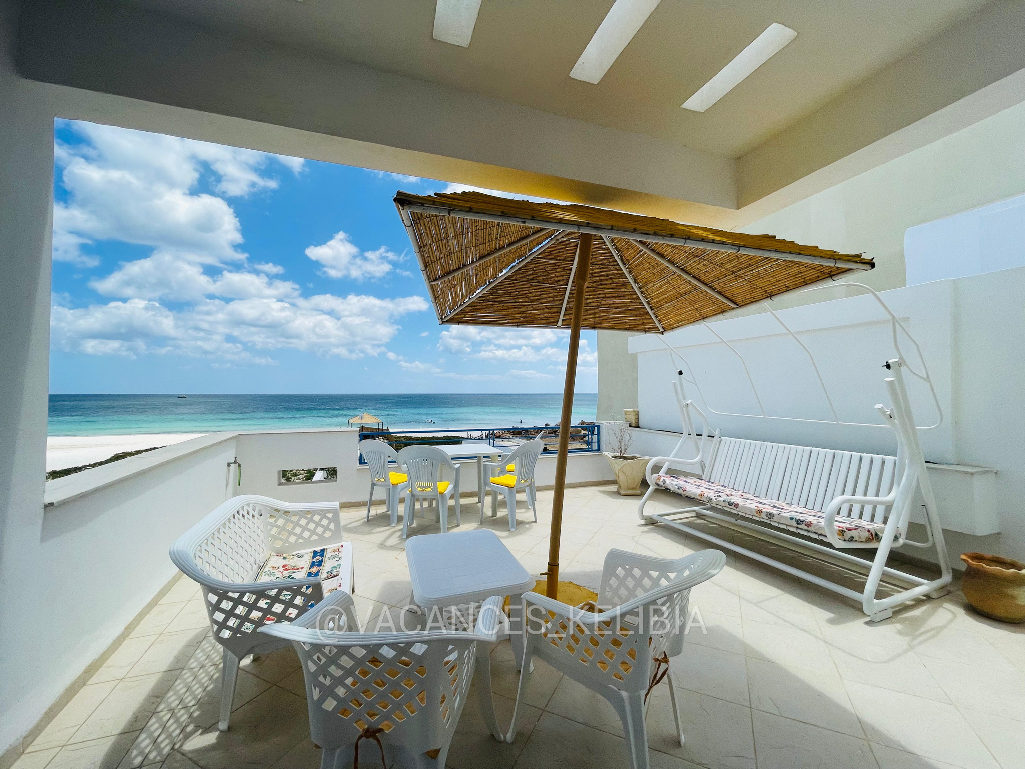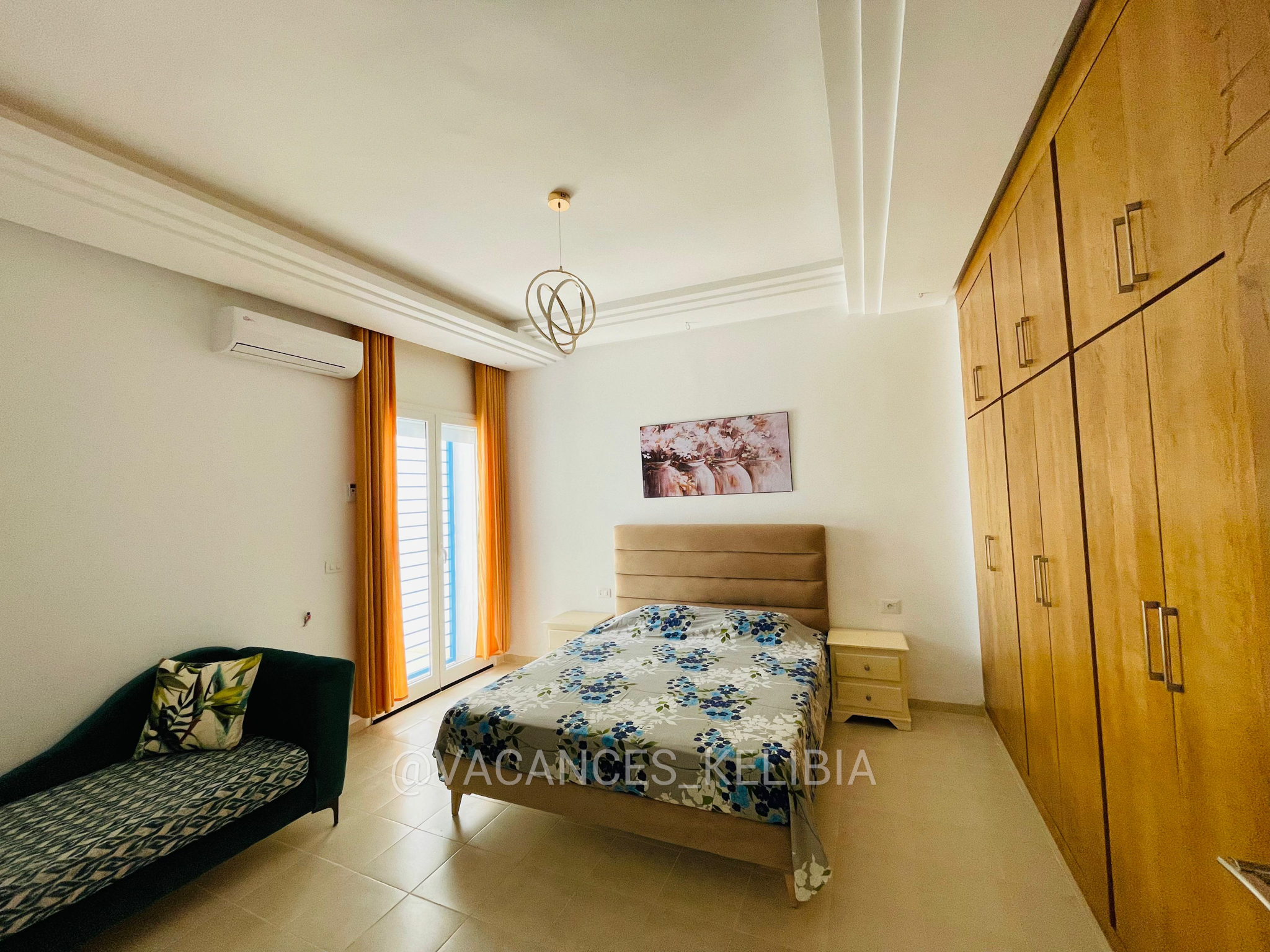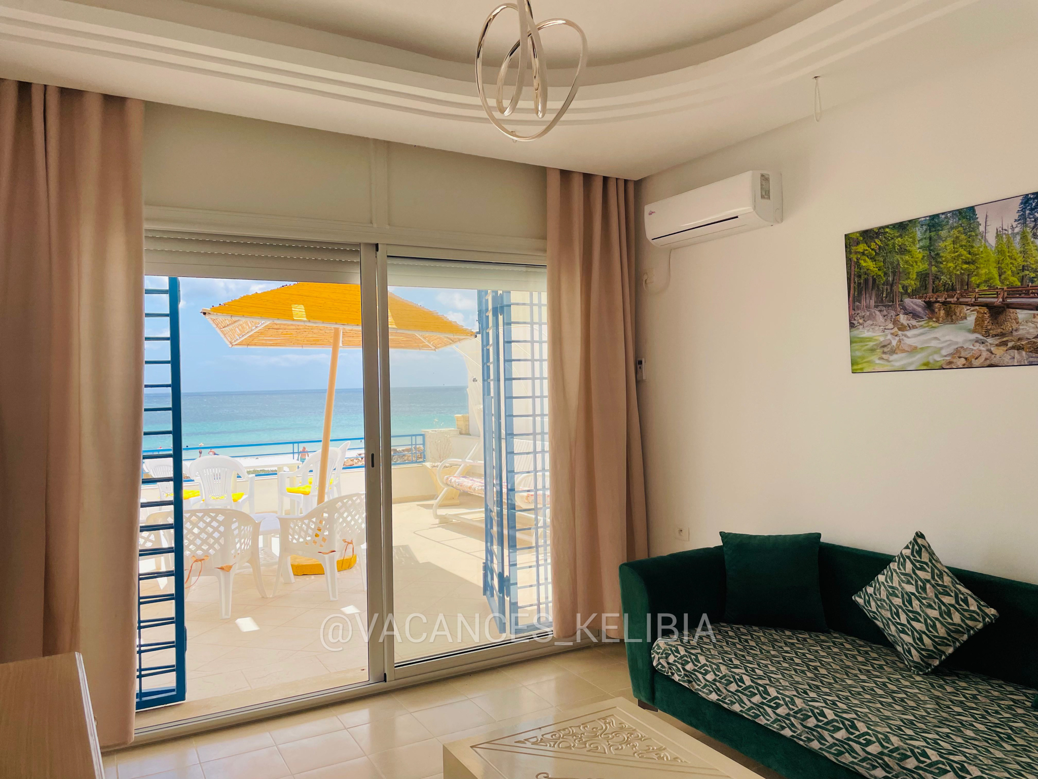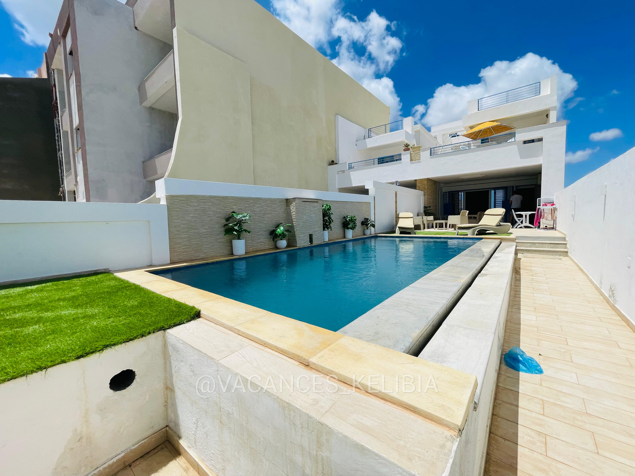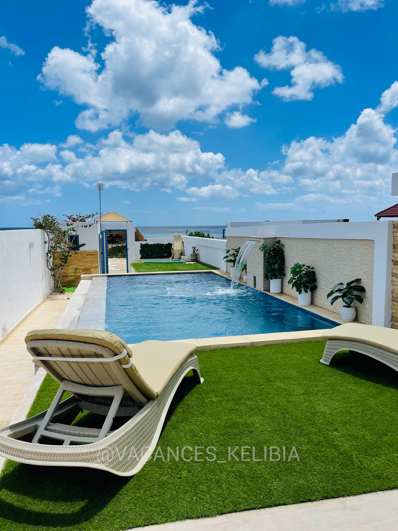 Vacances Kelibia, vous propose cette villa S+4 pieds dans l’eau avec piscine , spacieuse, haut standing climatisés située dans une zone calme à Kélibia